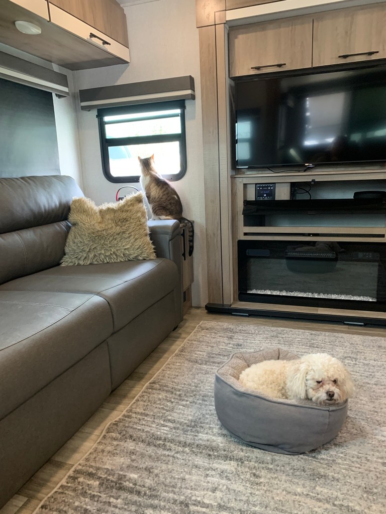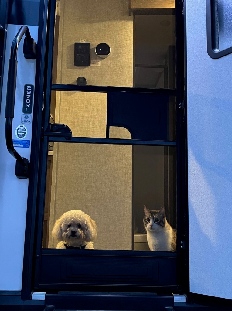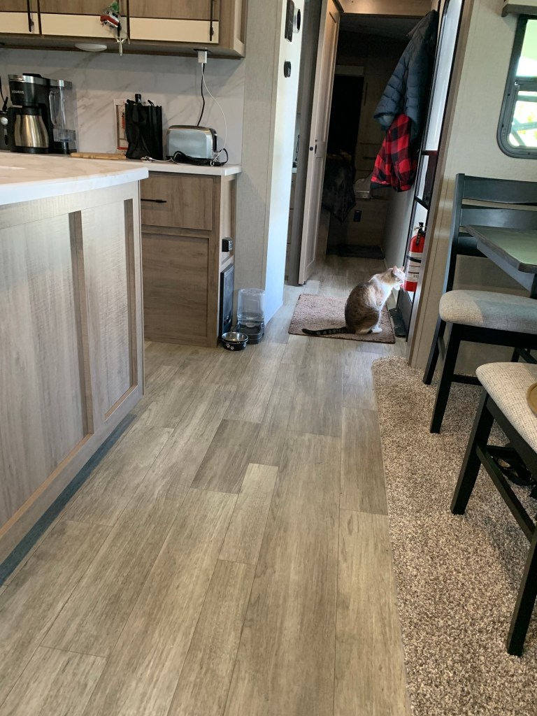 Betty pulled the Frey without a problem and all systems were go after Joel de-winterized the trailer. Is that a word lol? The refrigerator was nice and cold! The hot water was nice and hot! No leaks! All of the stuff we’ve loaded in stayed where it was supposed to so I’m feeling pretty organized.