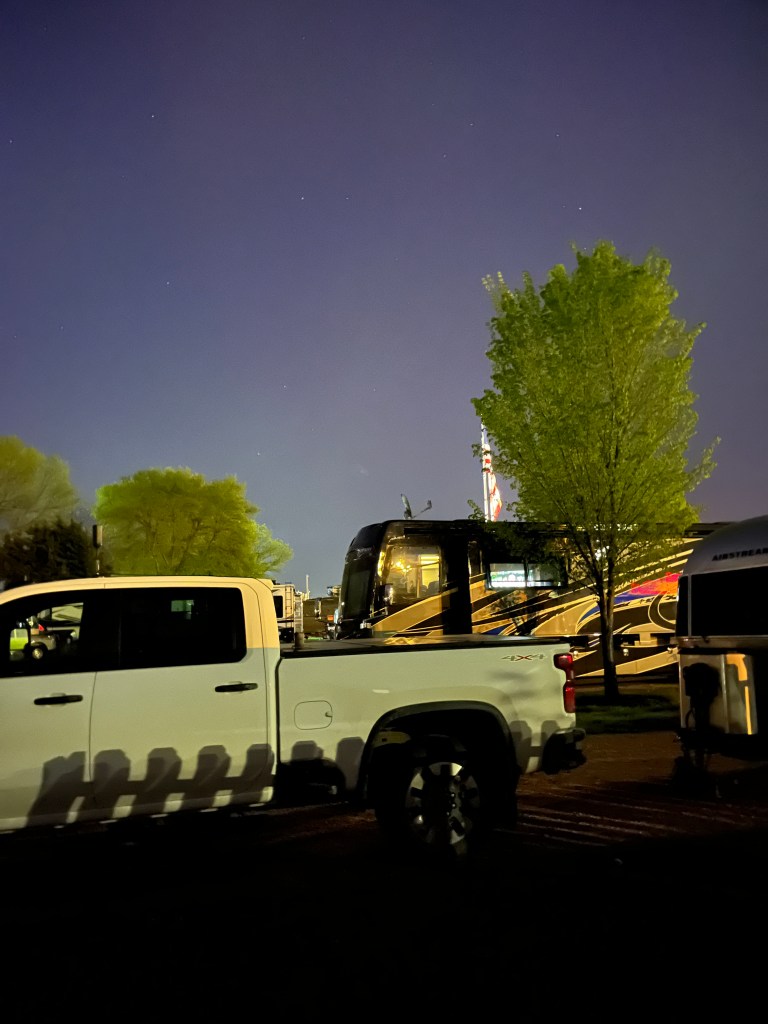 Day 2 was Sioux Falls to West Liberty Iowa. Another long 400 miles to Little Bear Campground. Sunny day again with light winds to start. We took a route that was partly smaller highways but it turned out to be fine. Traffic was light, Betty behaved and we were very happy to arrive to a nice pull through site. Quiet and clean we give Little Bear a 👍. We made dinner and collapsed. One more day to West Lafayette! We were very happy to have made the decision to drive a long on day 2 to have a shorter drive day 3. The objective was to arrive in West Lafayette in time to attend Bodhi’s first recital and solo act with his bass. Grandma was determined to make it for that and to celebrate Mother’s Day with her peeps.