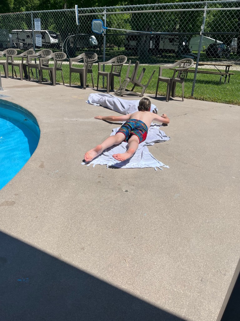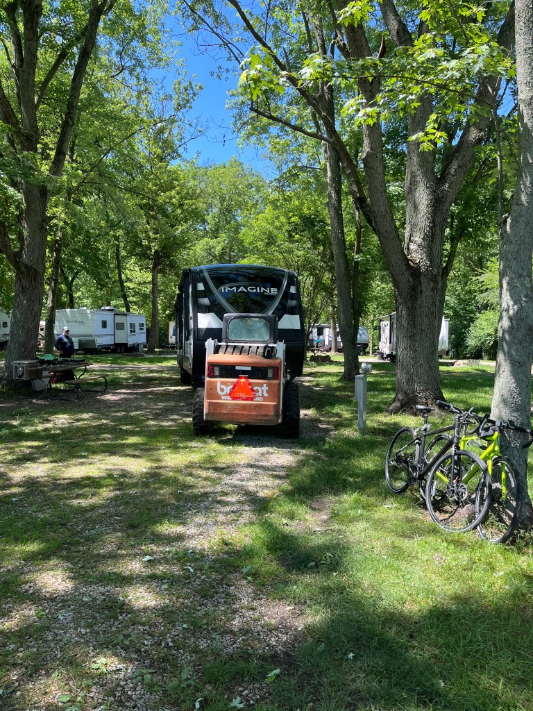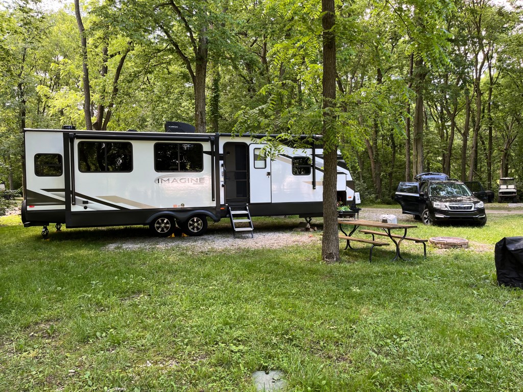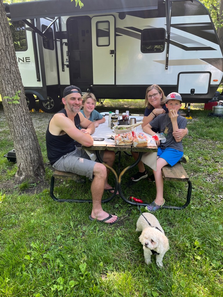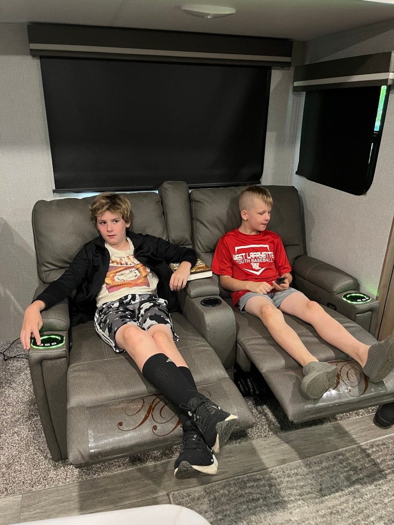 The fun part of our long pause was getting to see the kids. The boys had multiple baseball games and practices a week and we didn’t miss many. They also had swimming meets/practices and we got to see them both swim. We also got there in time too see some schiool activities like Bodhi’s Musical and pick up the kids from the bus stop and walk home from school with Bodhi and go on our traditional Turkey Run hike. We gave the big kids a break for a few nights. We hung with the grands. Went to a movie and spent an afternoon in Indianapolis. We ate wonderful dinners prepared by Brandon and had a few picnics at the trailer. It was a busy, fun filled, great visit and I will cherish the memories and look forward to the next time.